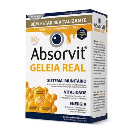 ABSORVIT® GELEIA REAL é um suplemento alimentar com geleia real, reforçado com própolis, frutooligossacáridos (FOS), zinco e selénio.