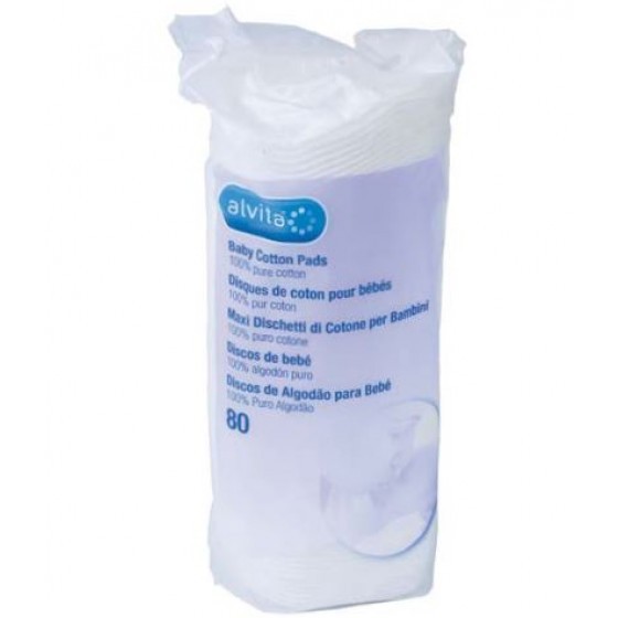 Discos em formato redondo, feitos de tecido de algodão, que se encontram indicados para a higiene do bebé.