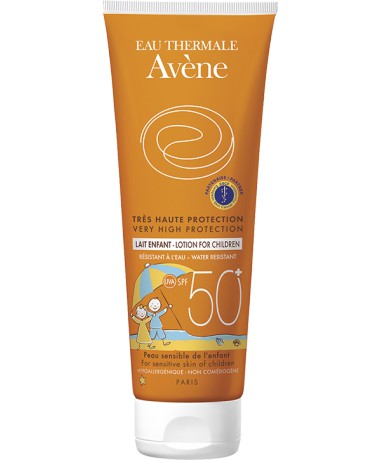 Proteção solar muito alta para crianças com pele sensível, para o rosto e corpo. Sem perfume. Resistente à água. Sem silicones.