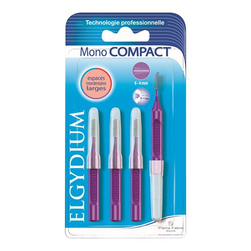 ELGYDIUM CLINIC ESCOVILHÕES MONO COMPACT são escovilhões concebidos para higienizar os espaços interdentários e impedir a formação de placa bacteriana entre os dentes. Como os espaços interdentários não são todos iguais, os escovilhões têm seis tamanhos, identificados por cores diferentes.Têm ainda cerdas bicolores: brancas para revelar as gengivas sensíveis em caso de sangramento, e pretas, mais finas, para facilitar a inserção da escova e visualizar a eliminação da placa bacteriana.