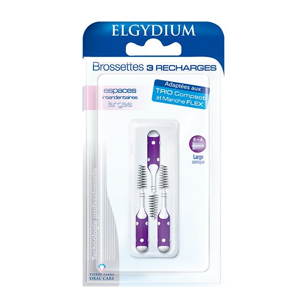 Elgydium Clinic Recarga Violeta 3 escovilhões, recarga de escovilhão largo, adaptável ao modelo Flex ou Trio Compact.