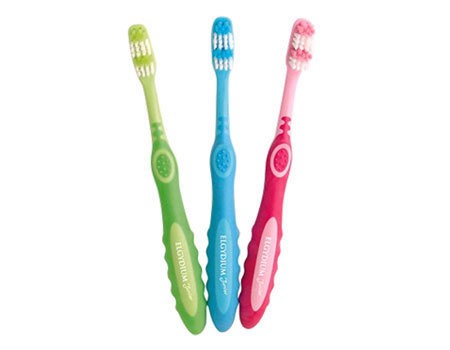 Escova de dentes indicada para crianças com idade entre os 7 e os 12 anos.