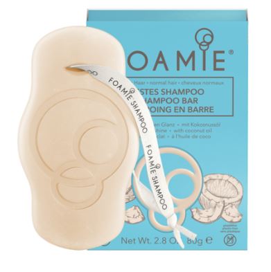 Foamie Champô Sólido Óleo Coco Cabelo Normal tem óleo de coco e proteína de trigo que ajudam a dar brilho ao cabelo.