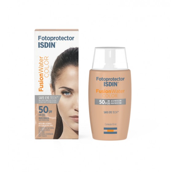 FOTOPROTECTOR ISDIN FUSION WATER COLOR SPF50+ 50ML proporciona uma cobertura natural que disfarça imperfeições, uniformiza o tom de pele e produz como efeito um aspeto saudável. E a melhor parte? Não irrita os olhos.
