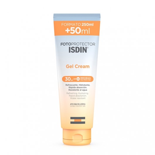 FOTOPROTECTOR ISDIN GEL CREME SPF30 250ML dá para o rosto e corpo, que hidrata como um creme e refresca como um gel.
