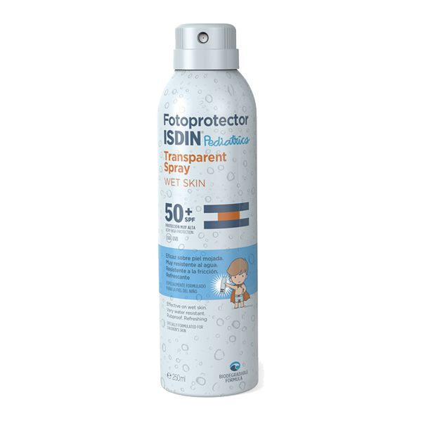 Isdin Fotoprotetor Isdin Pediatrics Loção Spray SPF 50 é um spray com fator de proteção solar elevado (SPF 50), que promove a proteção e hidratação da pele da criança.Contém filtros biológicos, vitamina E e dexpantenol, tornando o produto adequado a pele seca, desidratada ou atópica.A sua formulação hidrata e penetra rapidamente sem deixar resíduos de oleosidade.Muito resistente à água e à fricção.Testado em pele atópica.