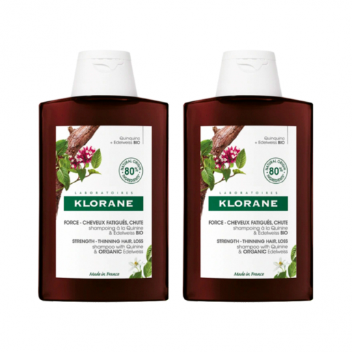 Klorane Quinina e Edelvaisse Bio Duo Champô antiqueda cabelo desvitalizado 2 x 400 ml com Desconto de 50% na 2Ş Embalagem