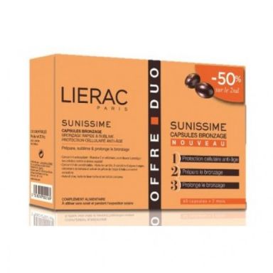 LIERAC SUNISSIME DUO 30 CÁPSULAS BRONZEADO COM DESCONTO DE 50% NA 2ª EMBALAGEM