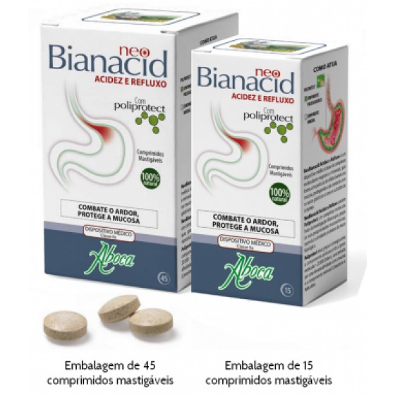 NeoBianacid Acidez e Refluxo é indicado para o tratamento das problemáticas relacionadas com a acidez, como o ardor, dor, refluxo gastroesofágico e gastrite. É indicado também para o tratamento dos sintomas associados à dispepsia (dificuldade de digestão), como o ardor, sensação de estômago pesado e meteorismo.