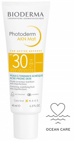 Photoderm AKN Mat SPF30 é uma fórmula à medida altamente protetora com uma fase oleosa reduzida, perfeitamente adaptada à pele com tendência acneica, que não compromete a sensorialidade: