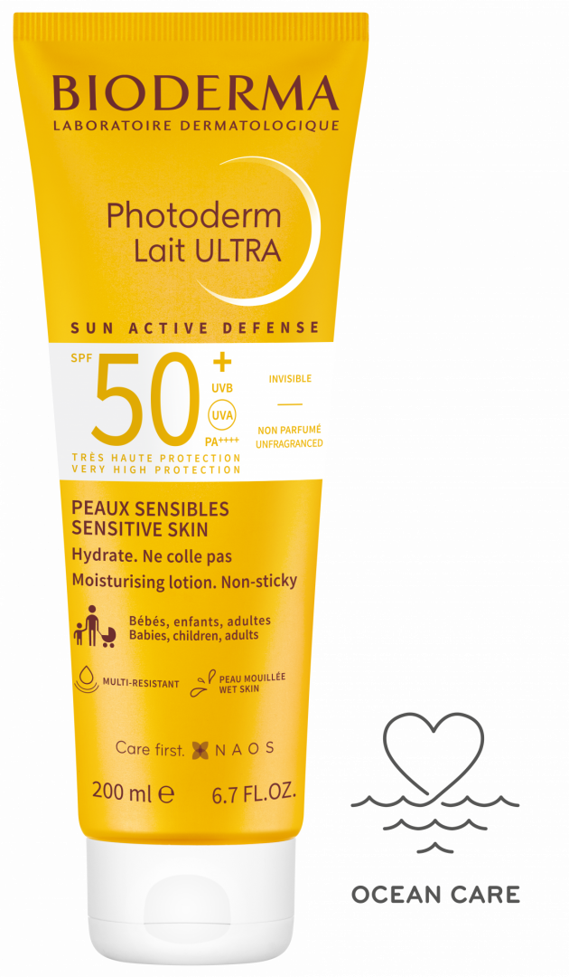 - Photoderm Bioderma Lait Ultra Spf50 200ml cria uma película protetora imperceptível na superfície da pele, protegendo-a das agressões e irritações externas