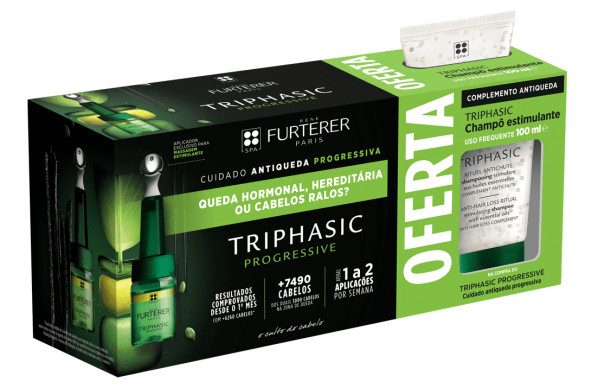 René Furterer Triphasic Progressive Monodoses antiqueda 8 x 5.5 ml com Oferta de Champô complemento antiqueda 100 ml