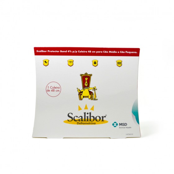 Scalibor® é uma coleira antiparasitária externa para cães que contém deltametrina, um potente inseticida e acaricida com propriedades repelentes (antialimentação). Protege o seu cão contra flebótomos (agente transmissor da leishmaniose) durante 12 meses e também contra carraças e mosquitos (Culex pipens) durante 6 meses.
