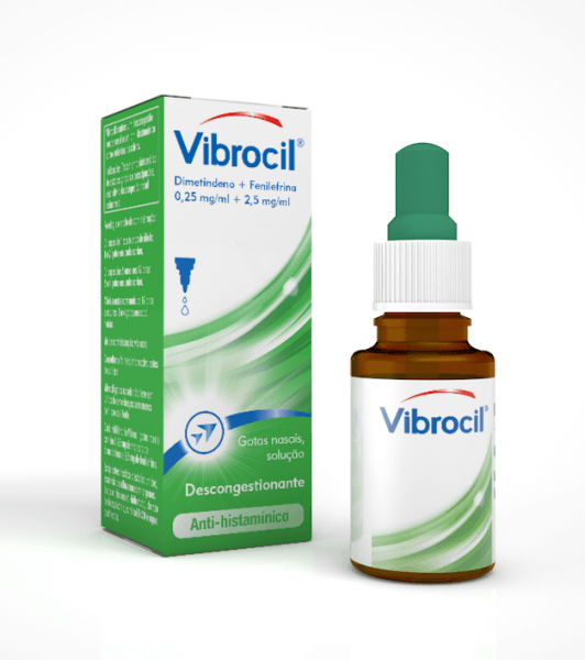 Vibrocil contém um descongestionante nasal (fenilefrina) e um anti-histamínico (maleato de dimetindeno) como substâncias ativas.